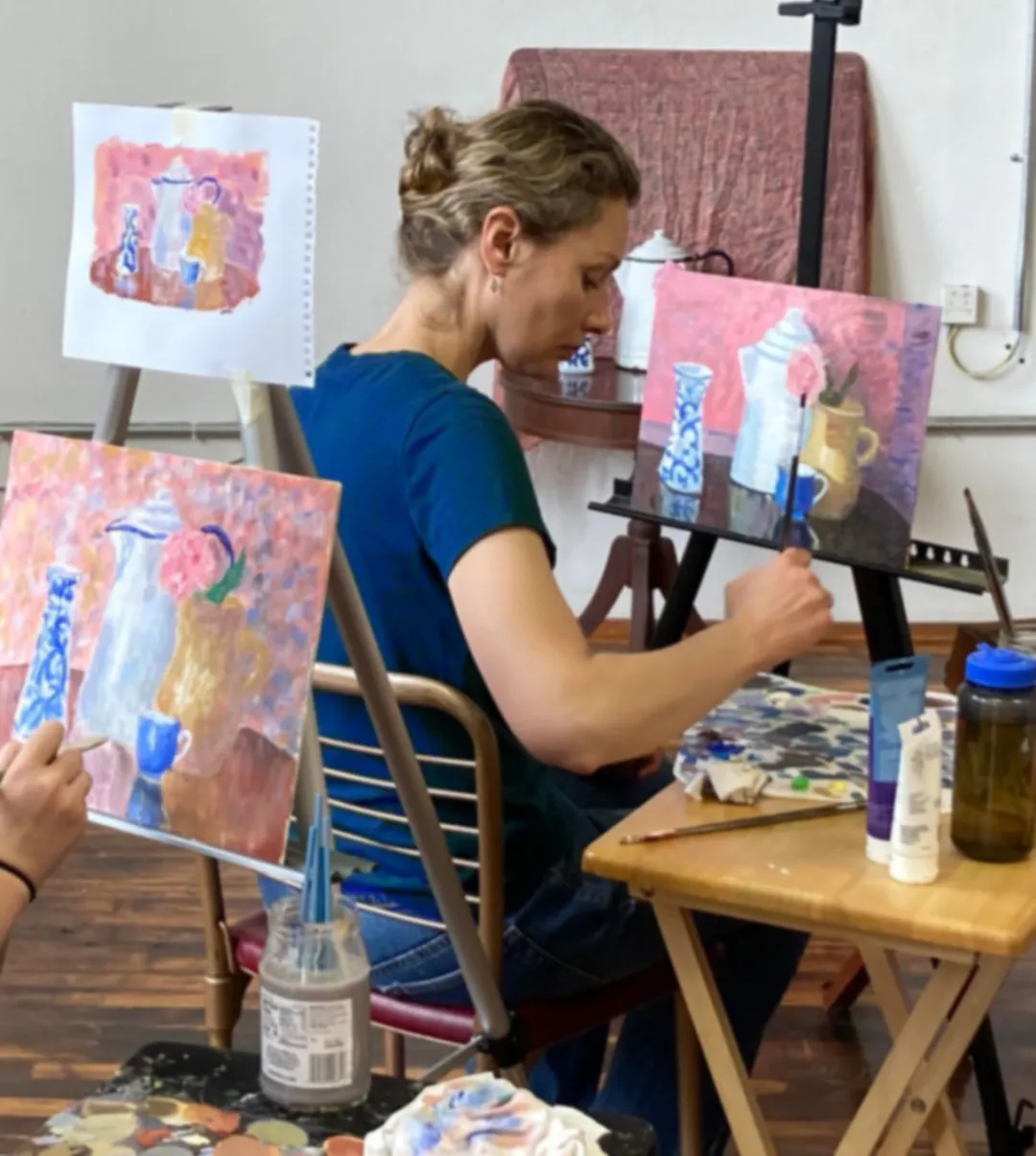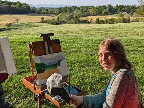 Blue Ridge classes are structured as private lessons in a group setting. Each student is working on his or her assignment based on his or her level and interest. Advanced students with a good proficiency in drawing may move quickly to painting and more complicated genres (portrait and figure). That is why our groups are limited to 8-10 students and we prepare for each student in advance.