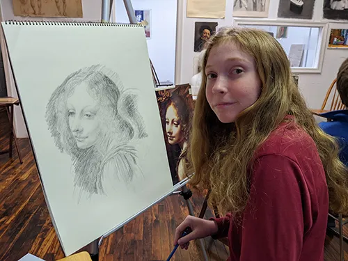 So, in practical terms, say, we have a group of 6-8 students. In that group we might have some who have been with us for a while, others just starting. Those who started earlier and have done a sufficient amount of drawing would be working in color and sometimes go back to pencils. New students would usually start with drawing.
