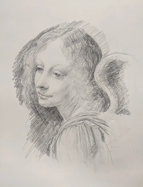 Subject matter also varies in terms of difficulty. Beginners work from simple still life setups utilizing geometric shapes and everyday objects, both man-made and organic (fruit and flowers for example). In conjunction, students may copy from the Old Masters, such as Van Gogh, Rembrandt, Vermeer, etc. Copying the world masterpieces trains the eye, and helps to understand the form, design, and color harmony. Once you learn to understand the laws of classical arts, you can break them but in a conscious way. Next step is the human form and working from classical sculptures, heads, busts, and anatomical pieces. Ultimately students work on portraits, self-portraits, and figurative pieces.